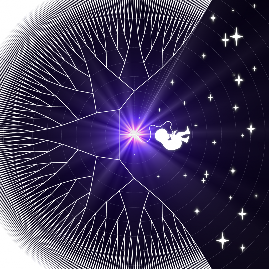 The next two lines are about the branches of this very fractal tree collapsing, because in every little „quantum of time“ we have to act and thus have to make little microdecisions. And because at every point in time there are infinite possibilities on how to choose to act, every other one of those infinite timelines of our lives that we didn’t choose gets destroyed. This leaves the alternative versions of ourselves that chose something else in that very moment to get „murdered in their prime“, because this alternative life is now not accessible anymore and thus pretty much dead.